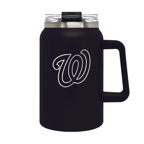 The 50 oz. COACH team colored hydration mug is vacuum insulated and features a laser etched licensed team logo. Includes a screw-top, dual-function lid with an opening for sipping and another for use with a straw.