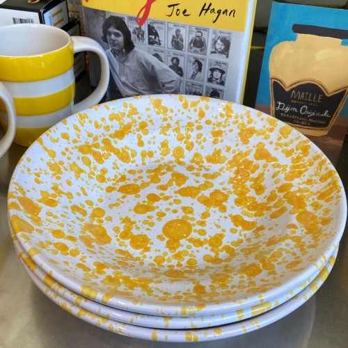 What a joyful yellow in this splatter ware plate. The dining size and bowl make an excellent pair. Perfect for adding a pop to the table your next dinner party.