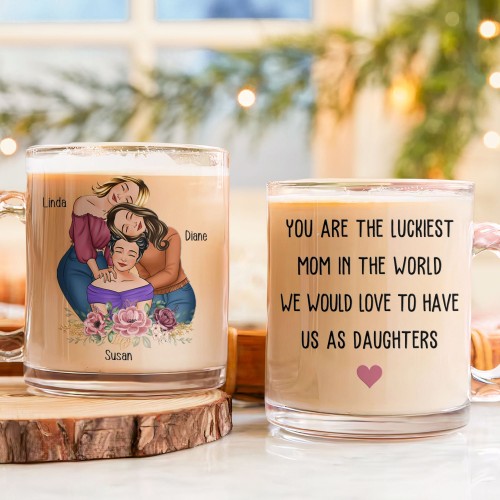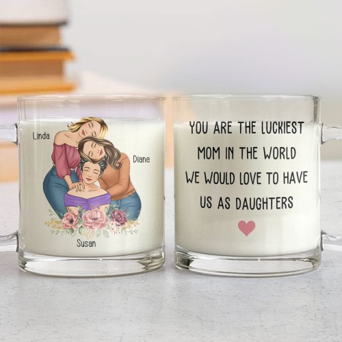 You Are The Luckiest Mom We Would Love To Have Us As Daughters – Personalized Glass Mug 11OZ